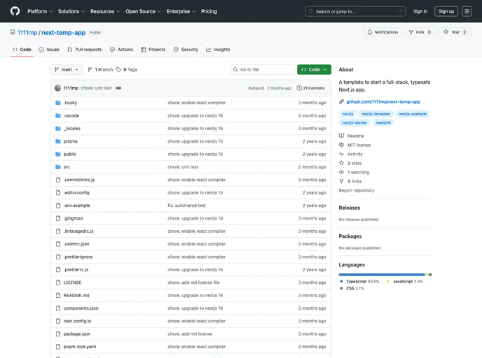 next-temp-app is a template that provides a starting point for building a full-stack, typesafe Next.js app. Next.js is a popular JavaScript framework that allows for server-side rendering and seamless client-side navigation. With this template, developers can jumpstart their Next.js projects with a pre-configured setup that includes essential features and functionality.