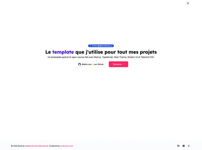 Légère base pour commencer un projet Next.js, TypeScript incluant, Shadcn/ui, tailwind CSS, prettier et next-theme (dark mode/white mode))