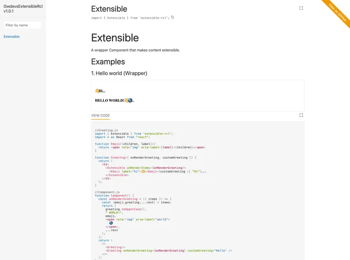 Extensible RCL is a project that aims to provide React Components Libraries (RCL) developers with an easy way to add extensibility support to their components. It allows for flexibility and customization in building component libraries using React.js and React Styleguidist.