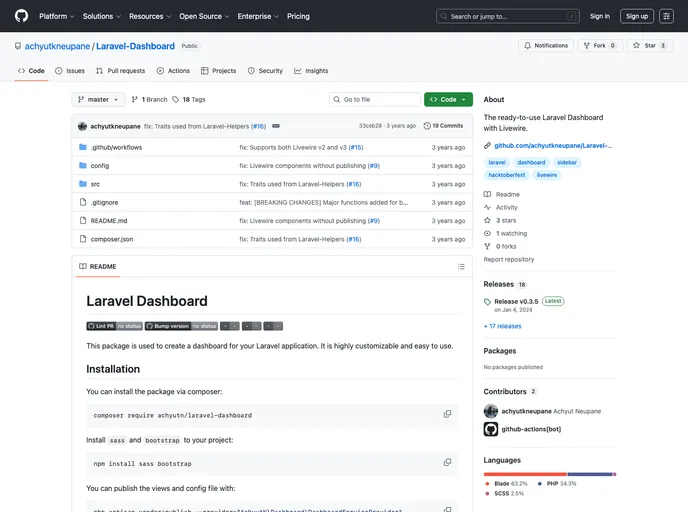 The Laravel DashboardLint PRBump package is a highly customizable and easy-to-use tool for creating dashboards in Laravel applications. It provides developers with the flexibility to customize the dashboard to suit their specific needs, and is designed to be accessible to developers of all skill levels. To install the package, use composer to install the package, install sass and bootstrap, and publish the necessary files.