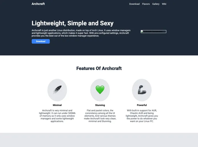 A simple landing page for Archcraft