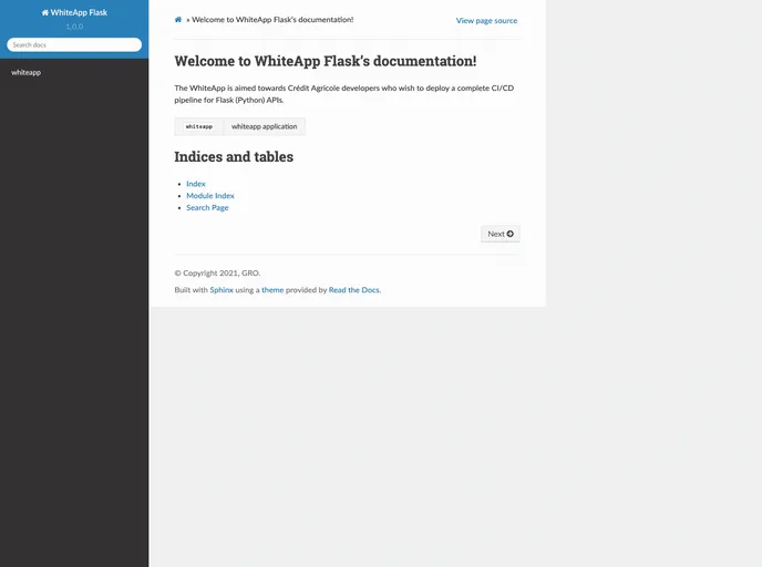 The WhiteApp package/Flask app is a template for a simple Flask API that displays its current version. It comes with Gitlab CI, Github Actions, and Travis pipelines for code linting, documentation, testing, test coverage, container building, and deployment. It also provides integration with Sonarcloud for static code analysis.