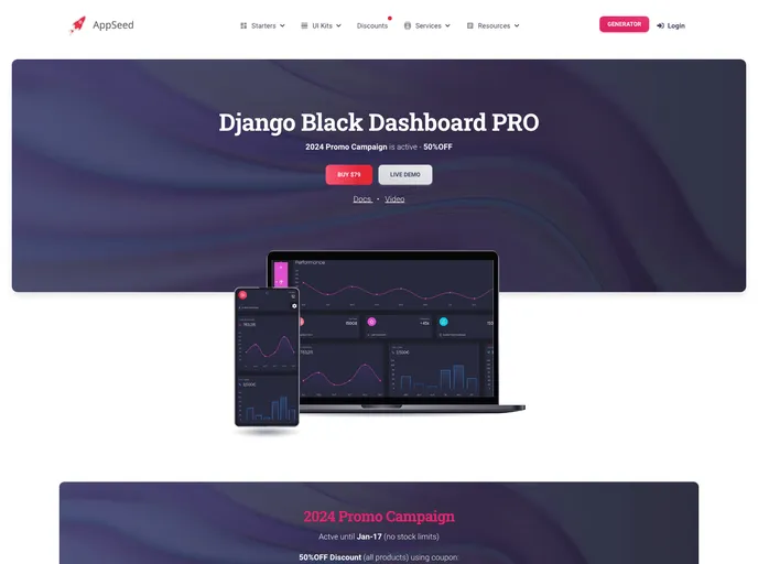 Django Dashboard Black PRO - Admin Panel coded in Django | AppSeed