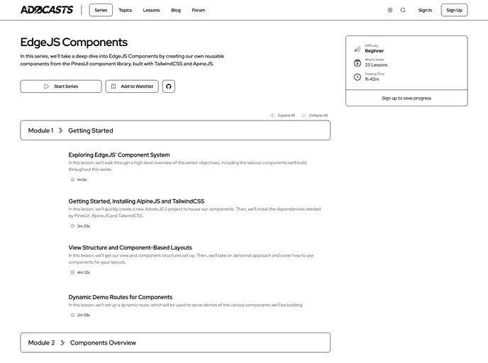 AdocastsEdgeJS Components is a comprehensive series that covers the fundamentals of EdgeJS Components, including state management, props, slots, and slot scopes. By following along with the examples provided, users can gain a solid understanding of how to build custom components in EdgeJS and enhance their web development skills. With easy-to-follow installation instructions, getting started with the series is quick and hassle-free. Whether you're a beginner or an experienced developer, this series offers valuable insights for creating dynamic and interactive web components.