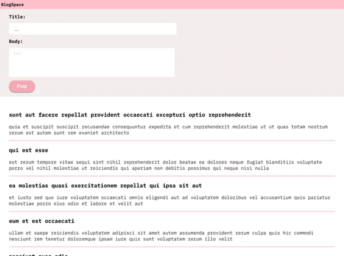 The BlogSpace project is a part of the Scrimba Frontend Developer Path and is an API exercise. The aim is to fetch existing blog posts (in the form of lorem ipsum) that consist of a title and post body. The project also involves creating a form with two inputs for title and body, and a button to post a new blog post. The new post will be added at the top of the existing posts. However, it should be noted that the new post will not be saved anywhere after page refresh.
