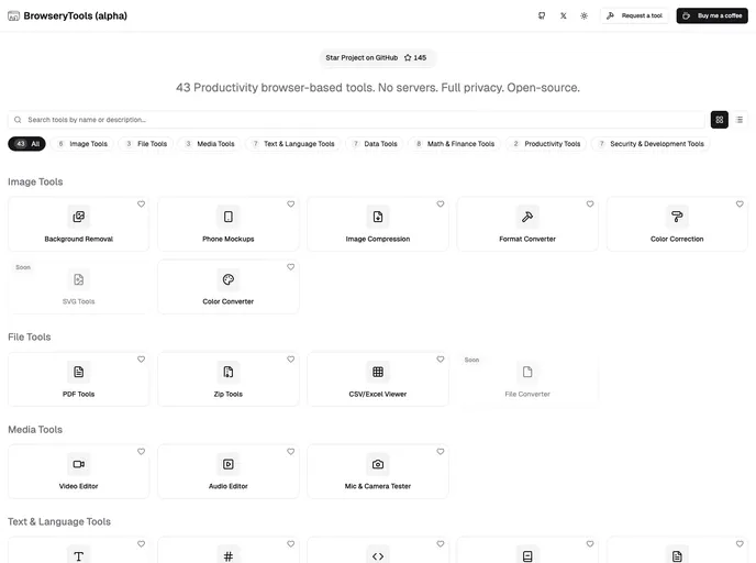 Browserytools is an innovative suite of browser-based utilities designed to enhance your productivity while maintaining complete privacy. Whether you’re looking to convert files, compress images, or generate strong passwords, Browserytools provides a seamless experience without the need for external servers. The thoughtful design focuses on efficiency and ease of use, making it a fantastic companion for anyone looking to accomplish tasks quickly and securely.