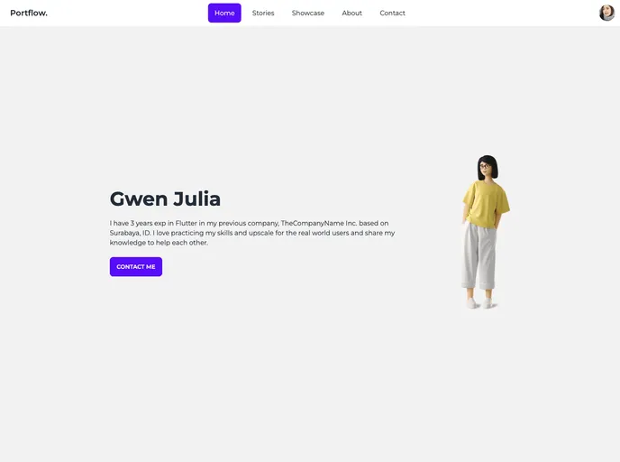 Portflow is a portfolio web template that is built with TailwindCSS and DaisyUI. It provides page layouts for a simple Article or Blog UI and is not intended for production use. The template includes features such as a home page, stories page, showcase page, about page, and contact page. To run the project, clone the repository and open it in an editor like Visual Studio Code.