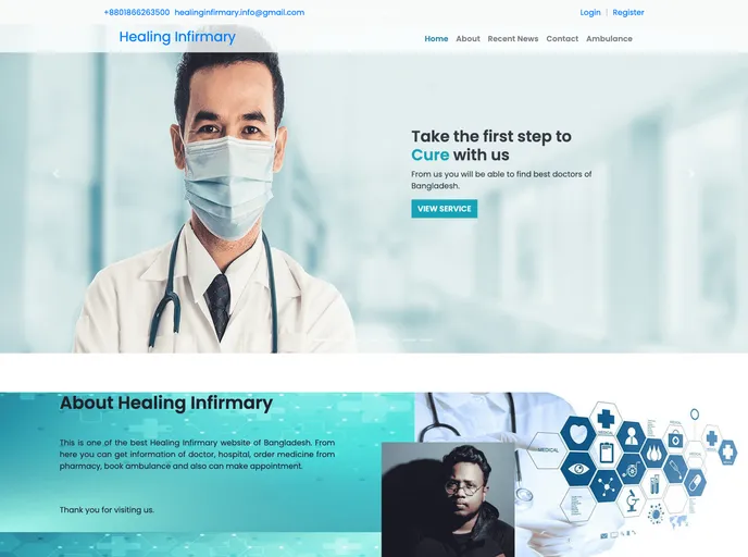 This software or web application is intended for implementing “The Healing Infirmary” system that would make the life of patients much easier. All the patients don’t need to go through various kind of hassle for booking appointment with doctors by going to hospital. Patients can easily access fro...