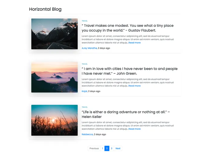 Horizontal Blog Section: Its unique horizontal layout allows for a fresh and innovative way to display blog posts, making navigation seamless for readers.