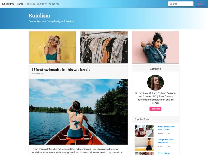 Kajalism Blog Template is a fully responsive template for Bootstrap lover's, which include navbar, carousel, footer, sidebar, cards, blog-post, gallery etc. - Created by Bootcatch team.