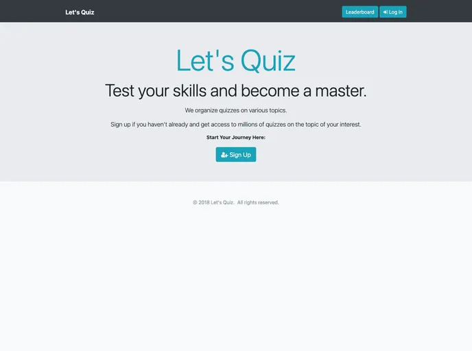 With its user-friendly design and powerful backend, Lets Quiz aims to enhance the quiz-taking experience by providing a reliable infrastructure for both quiz creators and participants. Whether you're looking to test your knowledge or create a challenging quiz for others, this platform serves as a perfect solution.