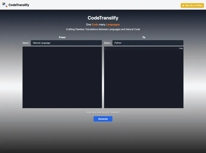 CodeTranslify is an innovative tool designed specifically for developers who want to tackle the challenges of translating programming languages. Powered by the ChatGPT API, this Next.js application provides an efficient way to bridge the language gaps that often arise in diverse codebases. Whether you are working on personal projects or within a team, CodeTranslify streamlines code translation, enhancing productivity and collaboration.