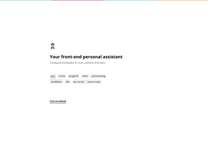 My front-end personal assistant, a webpack boilerplate for static websites.