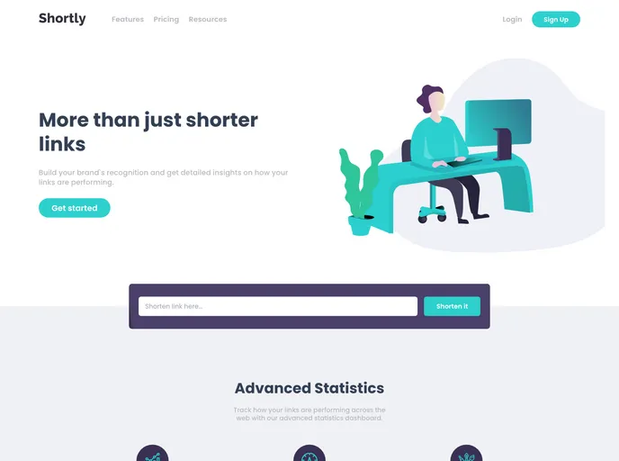 Shortly - a link shortener website template build with ReactJS & Redux. Visual style created with TailwindCSS framework