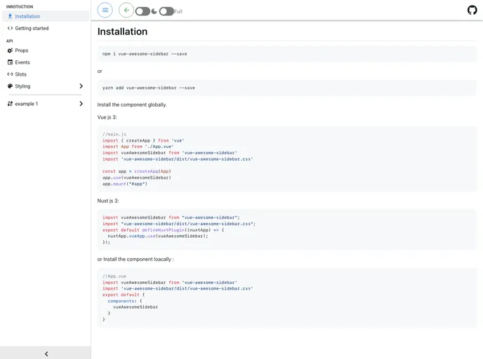 The Vue Awesome Sidebar is a modern and efficient sidebar menu component specifically designed for Vue 3 applications. It seamlessly integrates with vue-router, making it an ideal choice for developers looking to create a dynamic and user-friendly navigation experience. With its sleek design and powerful functionalities, this sidebar component stands out as a versatile addition to any modern web application.