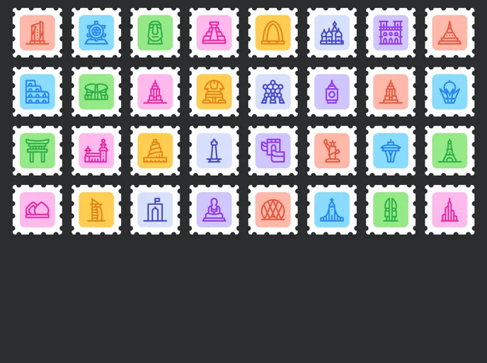 It's Just A Simple Static WebPage To Show Landmark SVG Icons with Tilt Hover Animation