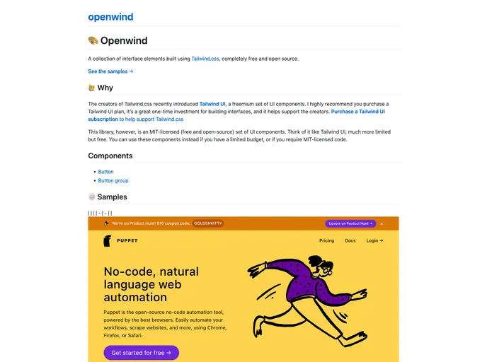 Open-source Tailwind.css interface elements and pages
