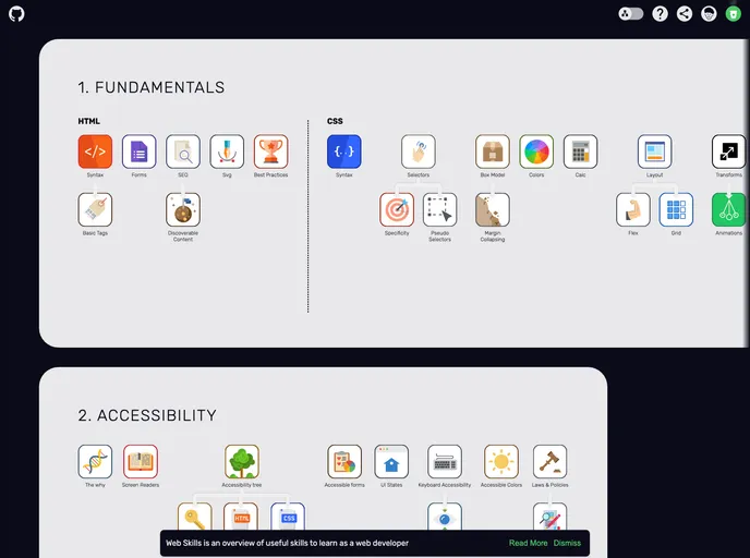 Whether you're just embarking on your web development journey or looking to expand your expertise, this resource serves as an excellent roadmap for the skills you need to succeed in the industry. From foundational coding languages to advanced frameworks, Web Skills covers a diverse range of topics that every web developer should consider.