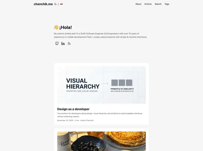 Sources of chenchik.me website with CV, About, Blog, Portfolio