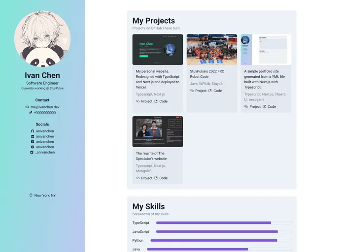 A simple portfolio site generated from a YML file built with Next.js with Typescript.