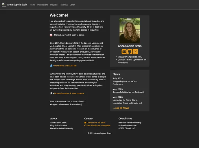 This website template is designed specifically for academics looking to create their own personal academic webpage. It is built using Jekyll, Liquid, and Bootstrap, and includes a unique set of features that are not commonly found in other publicly available templates. Some of these features include automatically-generated buttons for DOI/PDF/ARXIV/BIB/Abstract information using Jekyll Scholar, bibliography information and abstracts displayed in drop-down wells, Fontawesome icons for various platforms, a dark color scheme, and a consistent and attractive "About me" page. The template is highly customizable and can be forked and hosted locally or on Github pages.