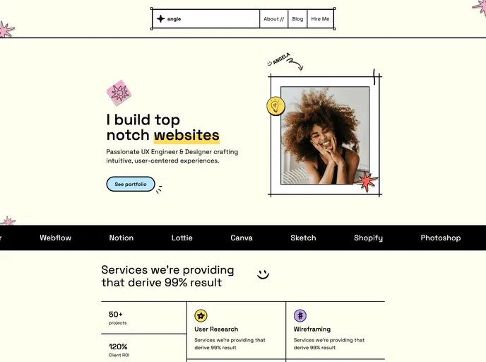 Whether you're a seasoned professional or just starting in your creative journey, having a well-designed portfolio is crucial. Angie not only aligns with modern design trends but also ensures that your work takes center stage, allowing your talents to shine through.
