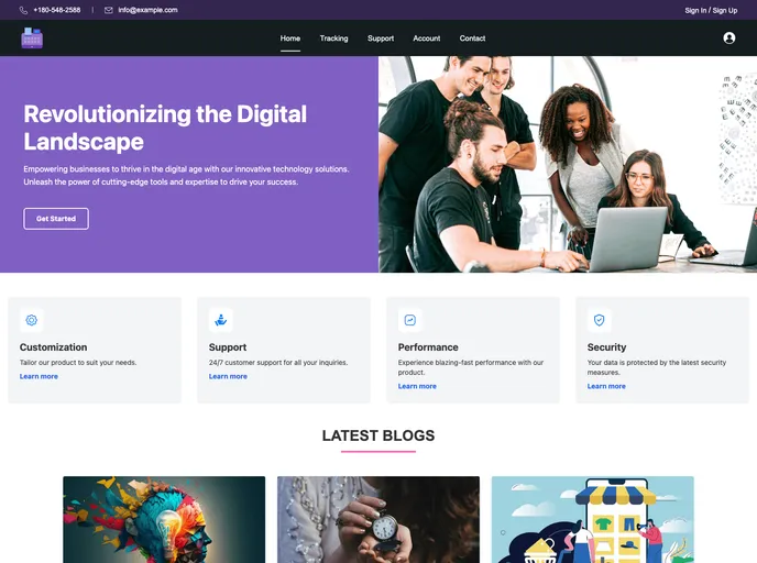Free NextJS Tech Startup Landing Page Template written in Next.js, Tailwind CSS 3, TypeScript, React, Framer, ESLint, Prettier, VSCode, PostCSS
