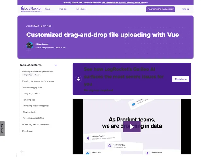 Vue.js drag-and-drop file upload component