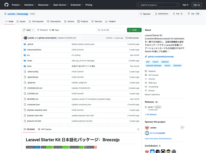 Laravel Starter Kit 日本語化パッケージ「Breezejp」は、Laravelのスターターキットを簡単に日本語化できる便利なツールです。最新のLaravel 12にも対応しており、Livewire版のスターターキットやBreeze、Jetstream、Laravel UIをサポートしています。このパッケージを利用することで、数コマンドで自動的に日本語化を行うことが可能で、開発者にとって非常に時間を節約できるアイデアです。