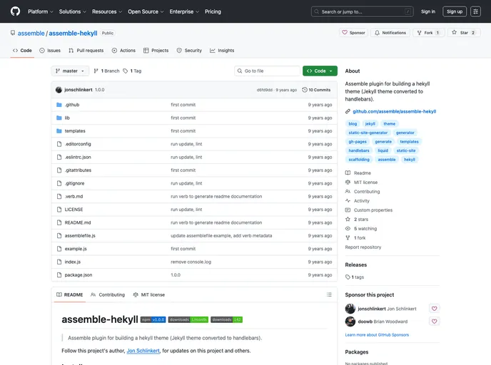 Assemble plugin for building a hekyll theme (Jekyll theme converted to handlebars).