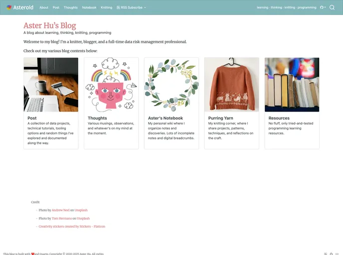 Aster Hu's personal website is built using Jekyll with the Klisé theme. The theme has been customized to suit Aster's needs. The content on the website is licensed under a Creative Commons Attribution-NonCommercial-ShareAlike 4.0 International License. To use the theme and host your own version of the website, you need to install Jekyll and replace the default theme with Klisé.