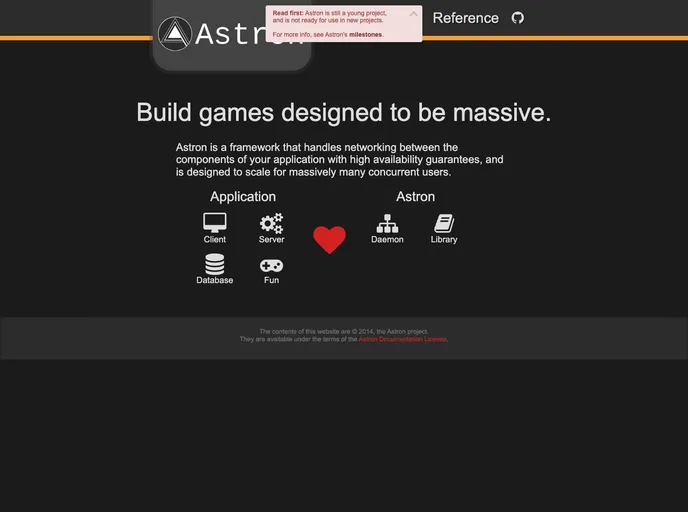 Astron is an open-source, distributed server suite designed for powering MMO games. This technology, inspired by a project at Disney Interactive Media Group, includes components that manage a multi-sharded game/application environment with many objects and clients.