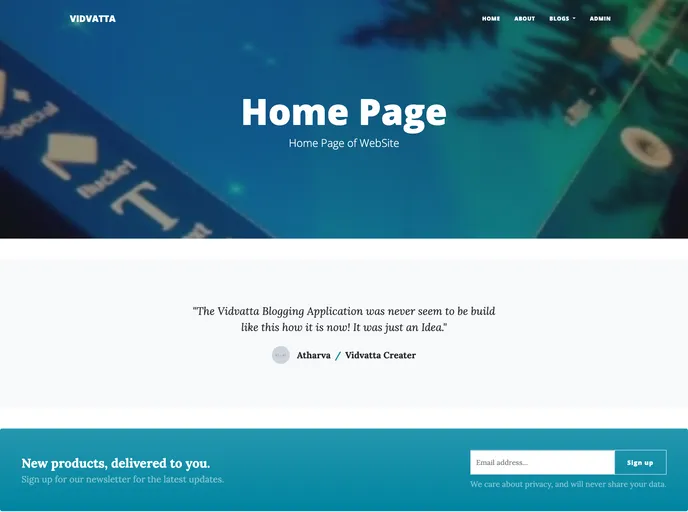 VIDVATTA is an simple to setup blog application for developers. This blog application is having vey rich features like- Post SEO, Post Categories, Post Title Search, ADMIN LOGIN and many more. This application uses mongoDB database for storing information's.