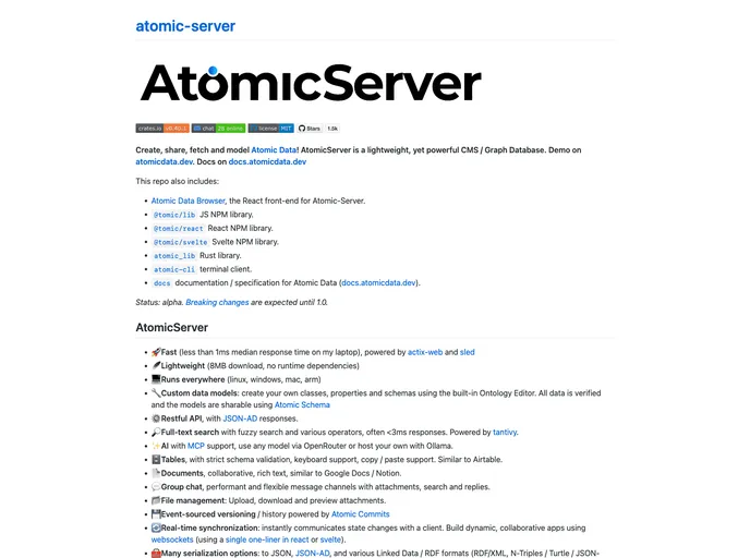 Atomic Server is an innovative open-source headless CMS that provides a flexible solution for managing content and data in real-time. With its powerful features and user-friendly design, it caters to developers looking for a robust system to handle various content needs across platforms. Whether you’re building a simple website or a complex application, Atomic Server empowers you to deliver content seamlessly.