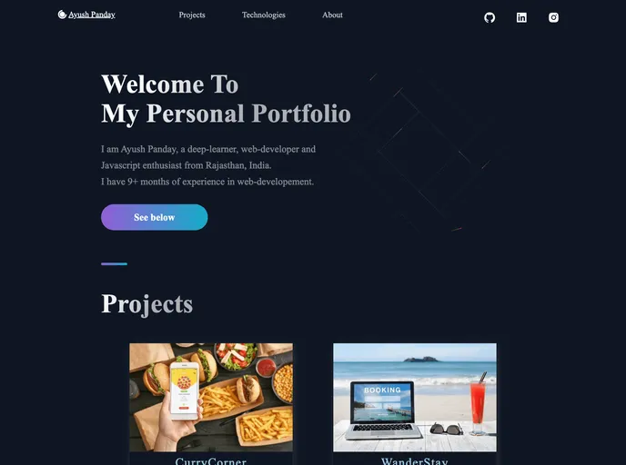 This personal portfolio website is built using the Next.js framework and offers a modern design to showcase your projects, skills, and experiences. It provides a visually appealing and user-friendly layout. The website can be easily customized by editing the data files, updating the styles, and replacing images and logos. After customization, the website can be deployed to various hosting platforms. Happy coding!