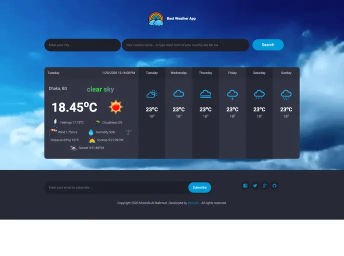 Weather App with Feelings, Cloudiness, Wind, Humidity, Pressure, Sunrise, Sunset etc.