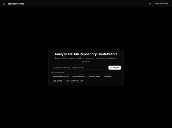 Contributor.info is a powerful dashboard designed to streamline and enhance the management of contributor information. Whether you are a project manager or part of a creative team, this tool efficiently organizes and presents essential data, ensuring you have easy access to valuable contributor insights. Its intuitive interface allows users to navigate through various metrics and details, making contributor management less daunting and more effective.