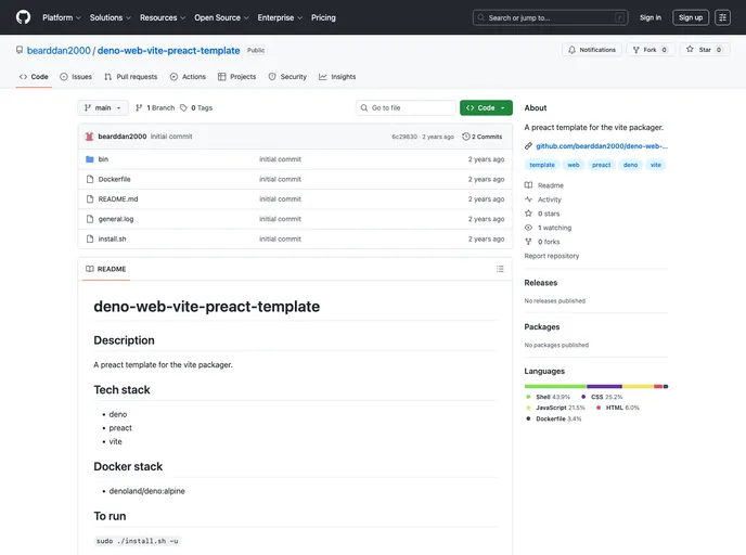 The Deno Web Vite Preact Template is a preact template designed to be used with the Vite packager. It provides a quick and easy way to set up a preact project with Vite, making it ideal for developers looking to start building web applications using this stack.