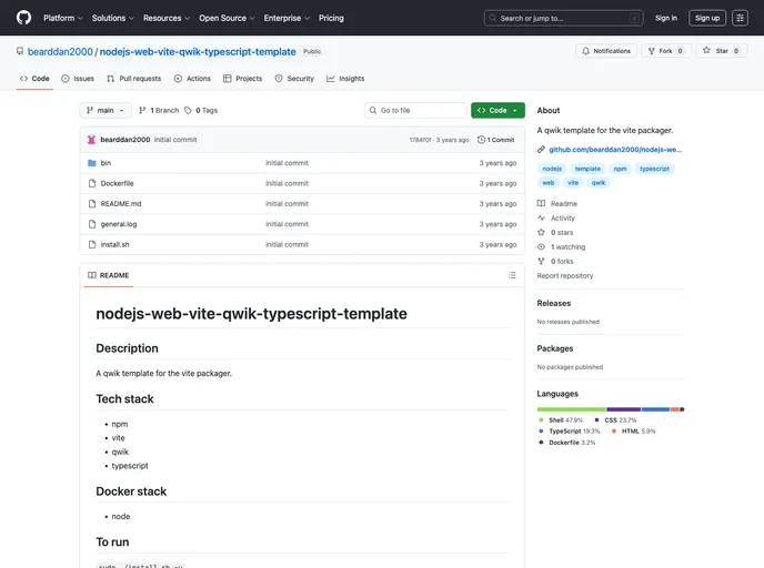 The NodeJS Web Vite Qwik Typescript Template is a qwik template designed for the Vite packager. It leverages the power of npm, Vite, qwik, TypeScript, and Docker to provide a seamless development experience for building web applications.