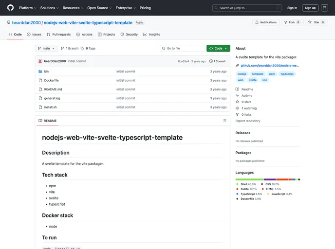 The NodeJS web Vite Svelte Typescript Template is a svelte template that utilizes the Vite packager. It is built using the npm, Vite, Svelte, and Typescript technologies.