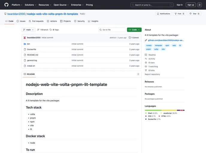 The NodeJS Web Vite Volta PNPM Lit Template is a lit template designed for the vite packager. It offers a range of features including support for volta, pnpm, npm, vite, and lit. The installation process is straightforward, allowing developers to quickly set up a NodeJS web project with minimal effort. This template is a great choice for those looking to utilize the mentioned technologies in their web development workflow.