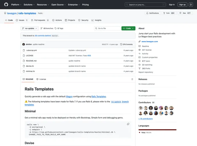 - API: Provides a Rails backend for building APIs. Similar to the minimal setup, it includes a Procfile and app.json for Heroku deployment. It offers the necessary setup for building APIs and can be used to create and deploy API endpoints.