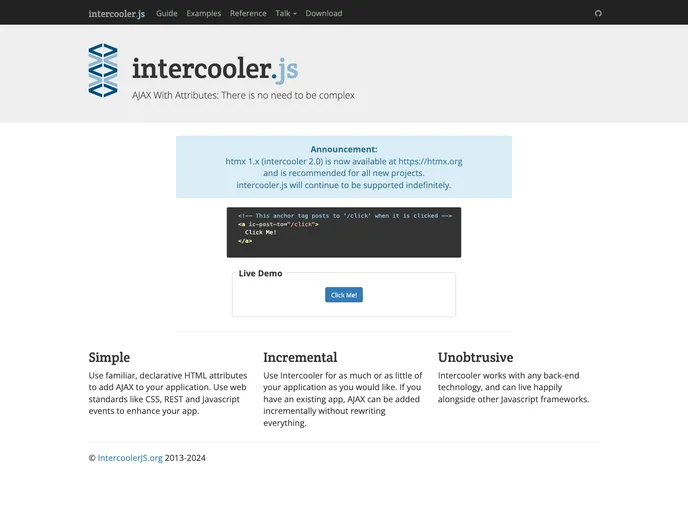 - Minimal Setup: Integrating Intercooler JS into your project is straightforward, allowing you to get started quickly without extensive configuration.