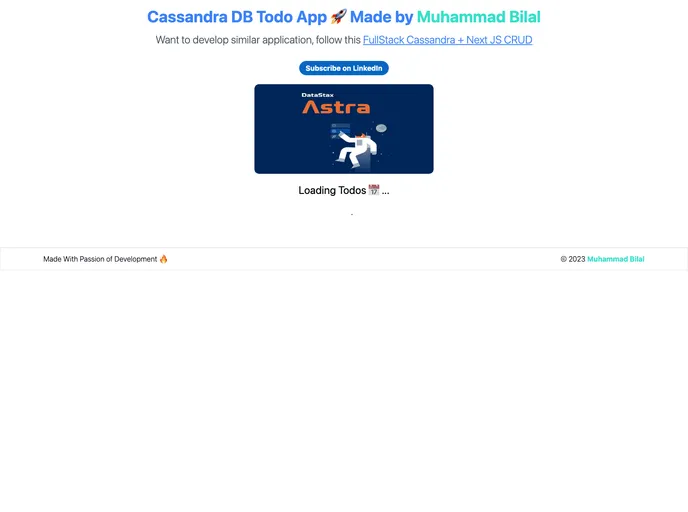 Todo app performing CRUD operations with AstraDB(Cassandra DB) APIS. Used Next JS APIS.