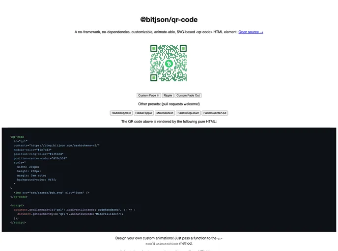 The Qr Code element offers a refreshing approach to generating QR codes directly within HTML, without the need for any additional frameworks or dependencies. This innovative solution provides developers with the flexibility to customize and animate their QR codes, making it an attractive feature for modern web applications. With its SVG-based design, it ensures high-quality output that is suitable for a variety of use cases.