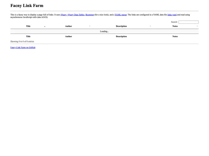 Fancy Link Farm Template for showing a list of links in a searchable table from a YAML data file