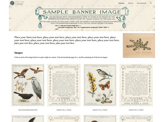 Simple HTML website template with an image banner and horizontal margins.