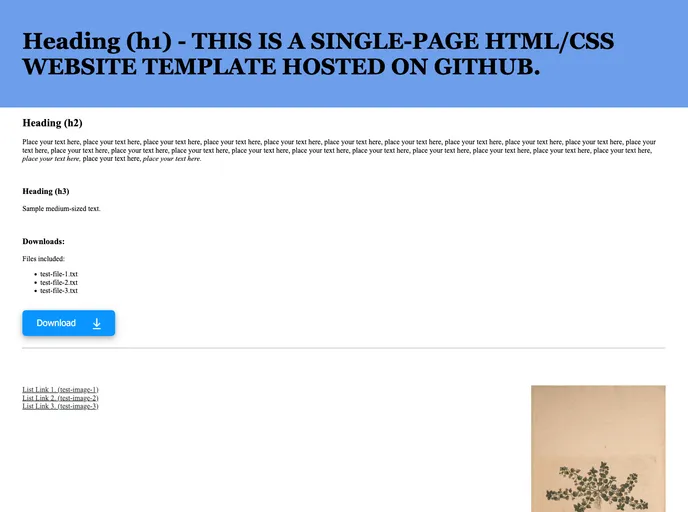 Simple HTML/CSS website template (single page with banner).