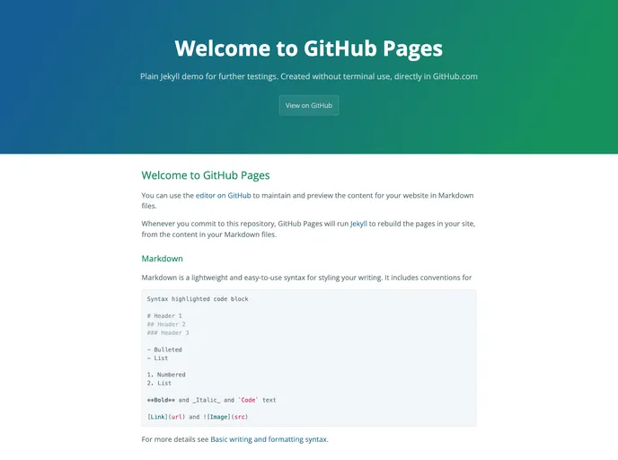 Plain Jekyll demo for further testings. Created without terminal use, directly in GitHub.com