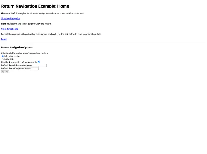 The Remix Return Navigation library is designed to create smooth return navigation experiences. It retains all existing state within a URL, promotes the use of native web practices for navigation, and makes return navigation easy to implement for both clients with and without Javascript enabled.